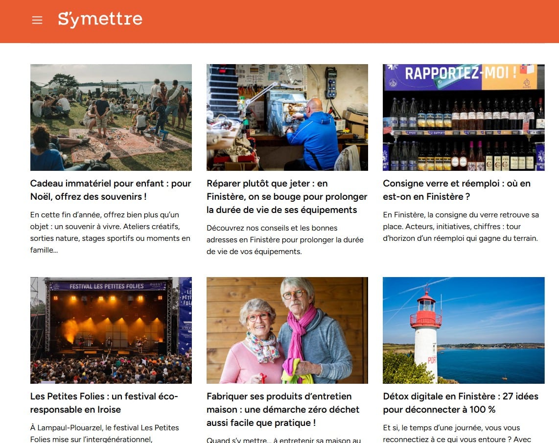 S’y Mettre est un blog ancré en Finistère, dédié aux initiatives positives et durables portées par les citoyens, les entreprises et les collectivités du territoire. Les contenus publiés abordent des thématiques telles que la réduction des déchets, le réemploi, la réparation ou l’évolution des pratiques de consommation, avec la volonté de rendre visibles des actions locales et concrètes.